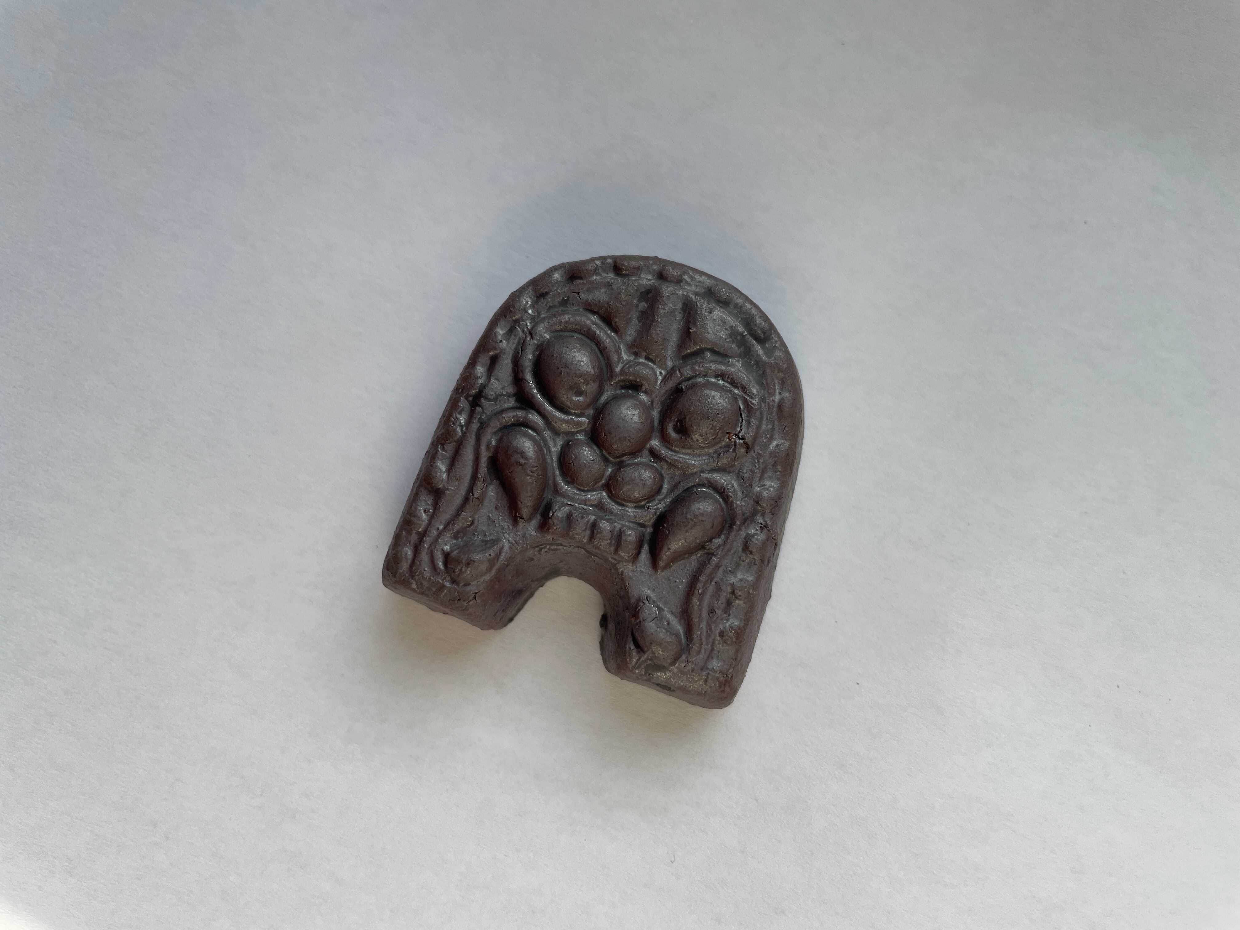 銀鼠色の小さな鬼瓦にマグネットが付いた便利なアイテムです!
